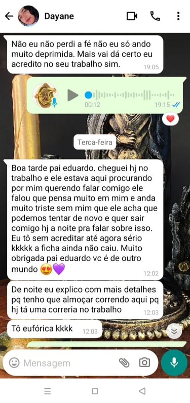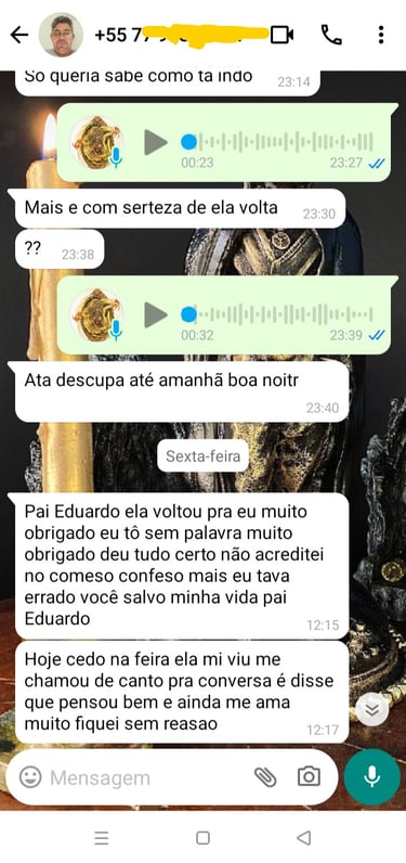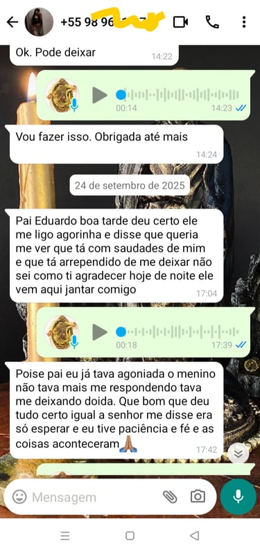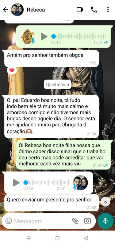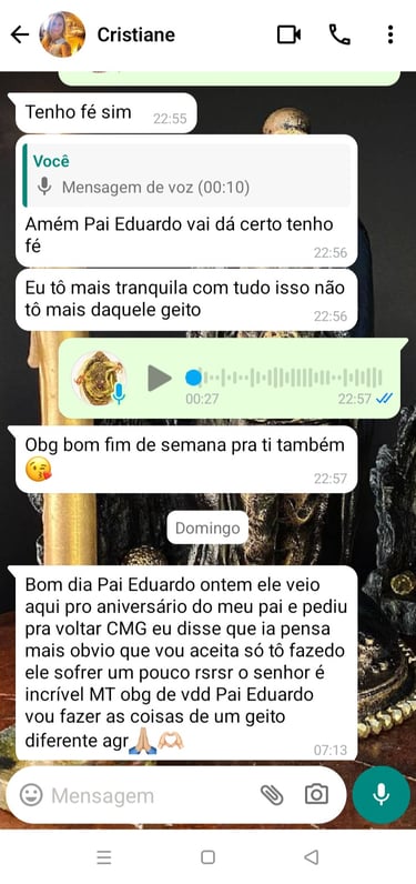 Não confie apenas nas palavras; confie nos resultados. Descubra as histórias reais de quem chegou até o Pai Eduardo em momentos de desespero e encontrou a transformação completa: